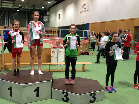 Alle Medaillengewinner sind Jahrgang 2002. David Nowitzki sprintete über 60m auf den dritten Platz. Er stand auch im Finale des 60-m-Hürdenlaufes. Marie Katzmareck erreichte ihre Medaille mit der neuen Bestleistung von 4,74 m im Weitsprung. Ebenfalls mit neuer persönlicher Bestzeit (2:29,59 min) belegte Lucia Hemeling über 800m den dritten Platz. Eine Medaille wert war auch die 800-m-Leistung von Marie Volz (2005), die in ihrem Lauf mit 10 Sekunden Vorsprung in 2:49,50 min ins Ziel kam. Im dritten Lauf waren jedoch die stärksten Läuferinnen, die sich gegenseitig vorantrieben und die ersten drei Plätze belegten. Marie freute sich dennoch über den vierten Platz und den 5. Platz im Weitsprung mit 3,82m.